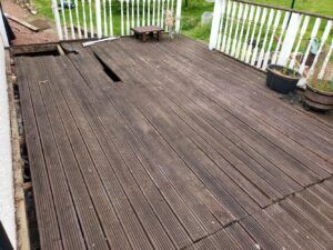 I kind of knew back then, that eventually i would need to tear out all the old deck and replace it. It’s probably around 30 years old, so it’s had a good innings standing proud against the ravages of Scottish winters.
