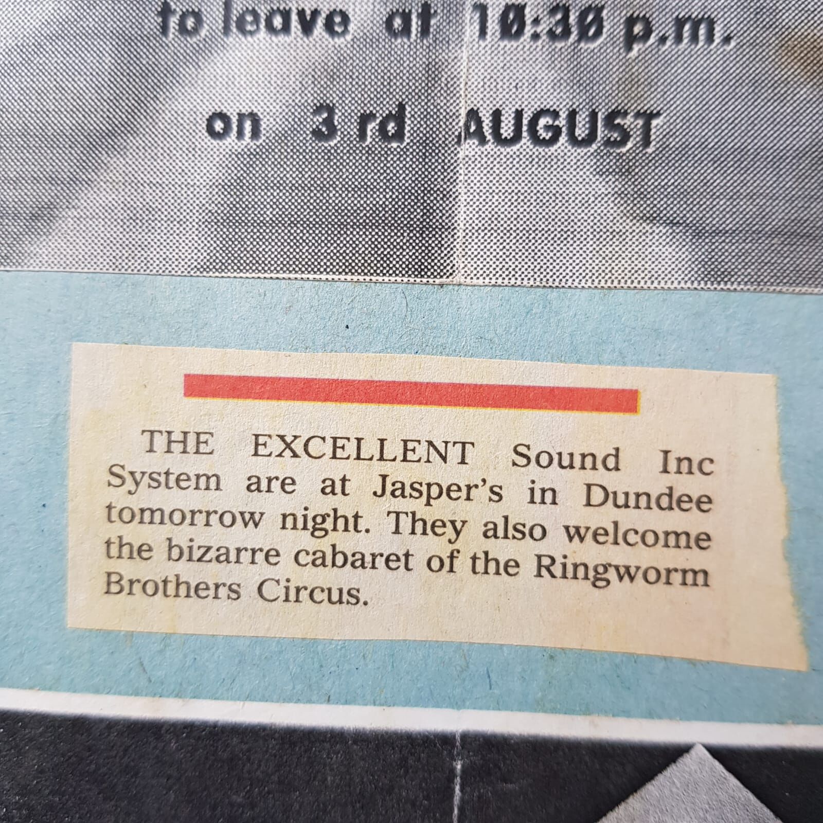 We needed a venue – Jasper’s was in the basement of the Tay Hotel, they had 2 large function rooms, but we couldn’t afford both – so we hired the smaller of the two and filled the end of the room with as big a PA as we could squeeze in!